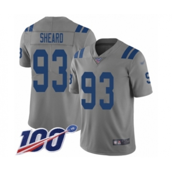 >Men's Indianapolis Colts #93 Jabaal Sheard Limited Gray Inverted Legend 100th Season Football Jersey
