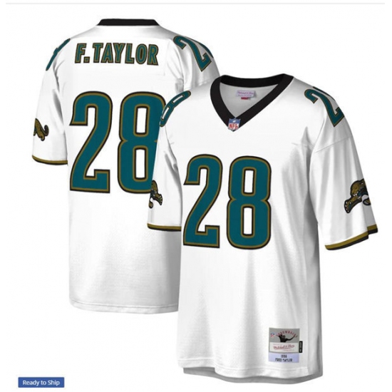 Mens Jacksonville Jaguars #28 Fred Taylor Mitchell&Ness White Legacy Throwback Jersey
