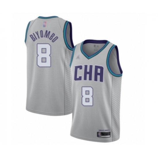 >Men's Jordan Charlotte Hornets #8 Bismack Biyombo Swingman Gray Basketball Jersey - 2019 20 City Edition