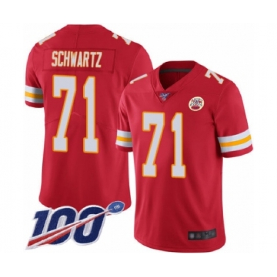Men's Kansas City Chiefs #71 Mitchell Schwartz Red Team Color Vapor Untouchable Limited Player 100th Season Football Jersey