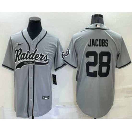 Men's Las Vegas Raiders #28 Josh Jacobs Grey Stitched MLB Cool Base Nike Baseball Jersey