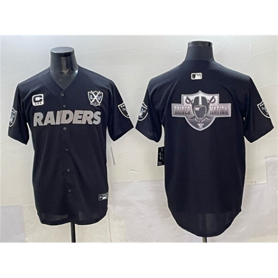 Men's Las Vegas Raiders Team Big Logo Black With Nevada Silver Stat And 65th Anniversary 3-Star C Stitched Baseball Jersey