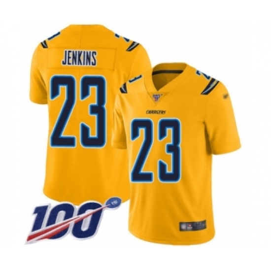 >Men's Los Angeles Chargers #23 Rayshawn Jenkins Limited Gold Inverted Legend 100th Season Football Jersey