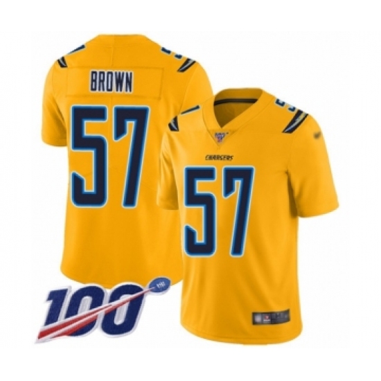 >Men's Los Angeles Chargers #57 Jatavis Brown Limited Gold Inverted Legend 100th Season Football Jersey