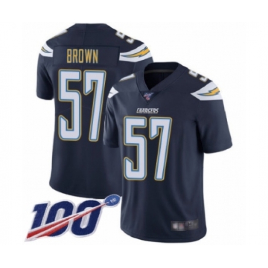 Men's Los Angeles Chargers #57 Jatavis Brown Navy Blue Team Color Vapor Untouchable Limited Player 100th Season Football Jersey