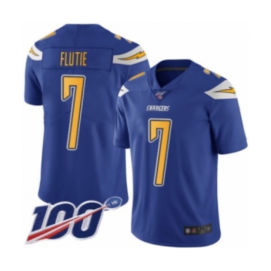 >Men's Los Angeles Chargers #7 Doug Flutie Limited Electric Blue Rush Vapor Untouchable 100th Season Football Jersey