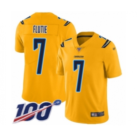 Men's Los Angeles Chargers #7 Doug Flutie Limited Gold Inverted Legend 100th Season Football Jersey