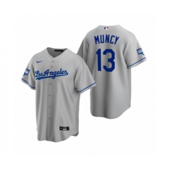 >Men's Los Angeles Dodgers #13 Max Muncy Gray 2020 World Series Champions Road Replica Jersey