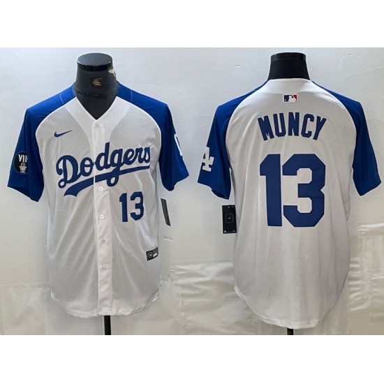 Mens Los Angeles Dodgers #13 Max Muncy Number White Blue Fashion Stitched Cool Base Limited Jersey
