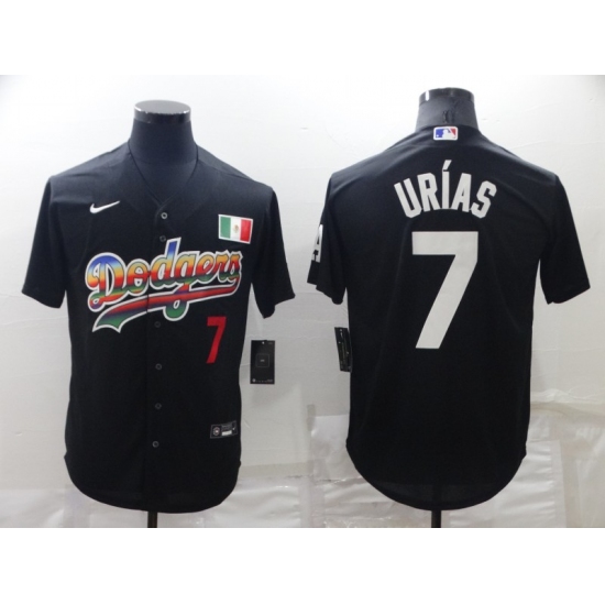 Men's Los Angeles Dodgers #7 Julio Urias Black With Red Stitched MLB Cool Base Nike Fashion Jersey