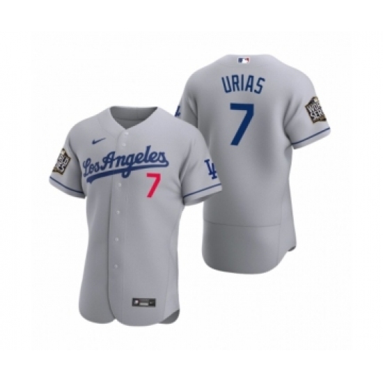 >Men's Los Angeles Dodgers #7 Julio Urias Nike Gray 2020 World Series Authentic Road Jersey