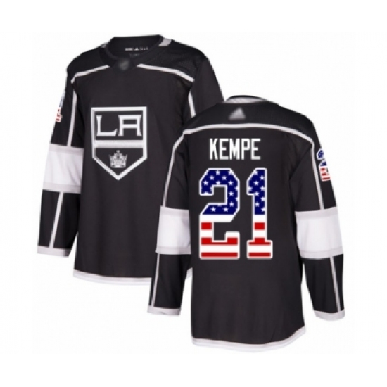 Men's Los Angeles Kings #21 Mario Kempe Authentic Black USA Flag Fashion Hockey Jersey