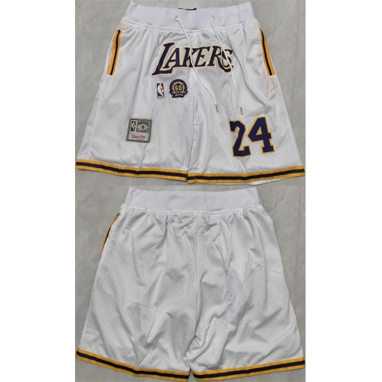 Men's Los Angeles Lakers #24 Kobe Bryant White 2025 Shorts (Run Small)