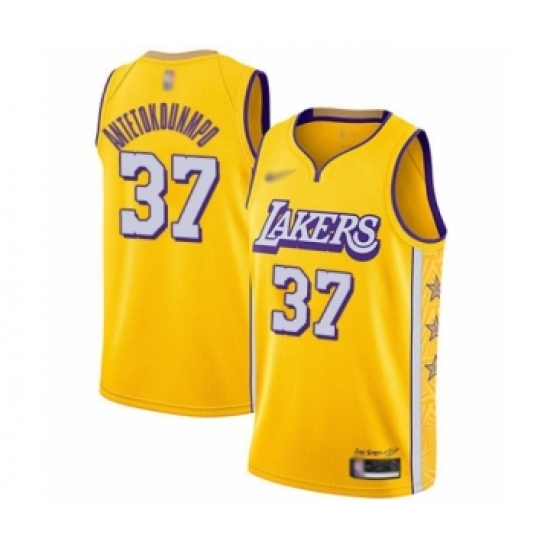 >Men's Los Angeles Lakers #37 Kostas Antetokounmpo Swingman Gold 2019-20 City Edition Basketball Jersey
