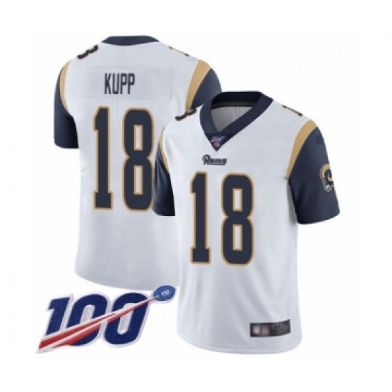 Men's Los Angeles Rams #18 Cooper Kupp White Vapor Untouchable Limited Player 100th Season Football Jersey