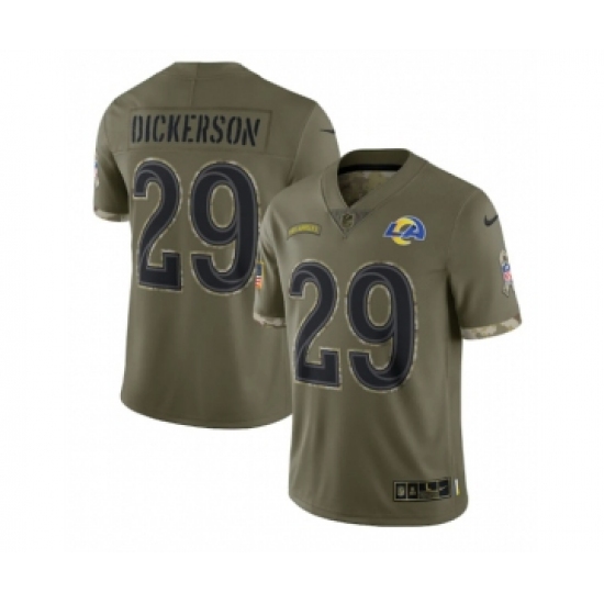 >Men's Los Angeles Rams #29 Eric Dickerson 2022 Olive Salute To Service Limited Stitched Jersey