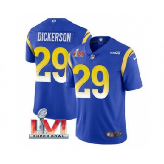 >Men's Los Angeles Rams #29 Eric Dickerson Royal 2022 Super Bowl LVI Vapor Limited Stitched Jersey