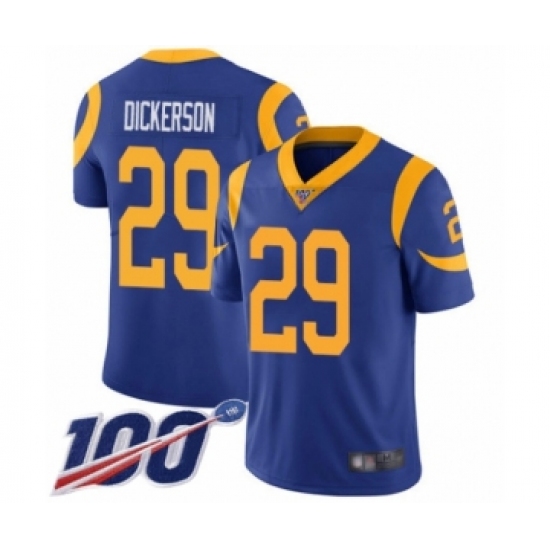 Men's Los Angeles Rams #29 Eric Dickerson Royal Blue Alternate Vapor Untouchable Limited Player 100th Season Football Jersey