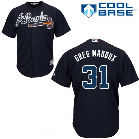 Home>MLB>Atlanta Braves>Greg Maddux>Men's Majestic Atlanta Braves #31 Greg Maddux Replica Blue Alternate Road Cool Base MLB Jersey