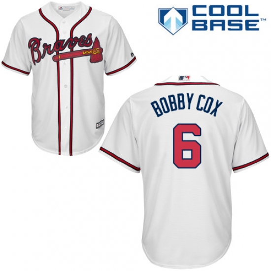 Home>MLB>Atlanta Braves>Bobby Cox>Men's Majestic Atlanta Braves #6 Bobby Cox Replica White Home Cool Base MLB Jersey