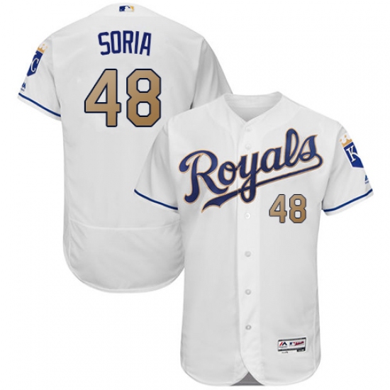 Home>MLB>Kansas City Royals>Joakim Soria>Men's Majestic Kansas City Royals #48 Joakim Soria White Home Flex Base Authentic MLB Jersey