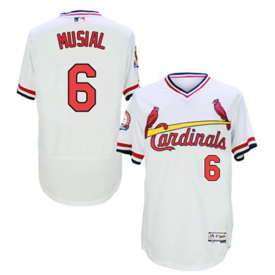 Men's Majestic St. Louis Cardinals #6 Stan Musial White Flexbase Authentic Collection Cooperstown MLB Jersey