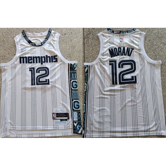 >Men's Memphis Grizzlies #12 Ja Morant White 2025-26 City Edition Edition Stitched Basketball Jersey