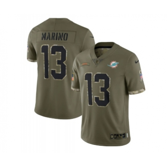 Men's Miami Dolphins #13 Dan Marino 2022 Olive Salute To Service Limited Stitched Jersey