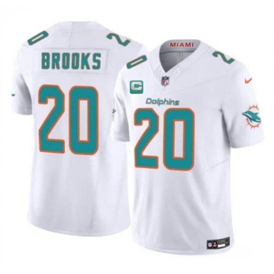 >Men's Miami Dolphins #20 Jordyn Brooks White 2025 F.U.S.E. With 1-Star C Vapor Limited Football Stitched Jersey