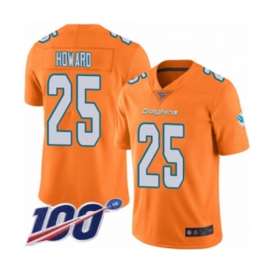 >Men's Miami Dolphins #25 Xavien Howard Limited Orange Rush Vapor Untouchable 100th Season Football Jersey