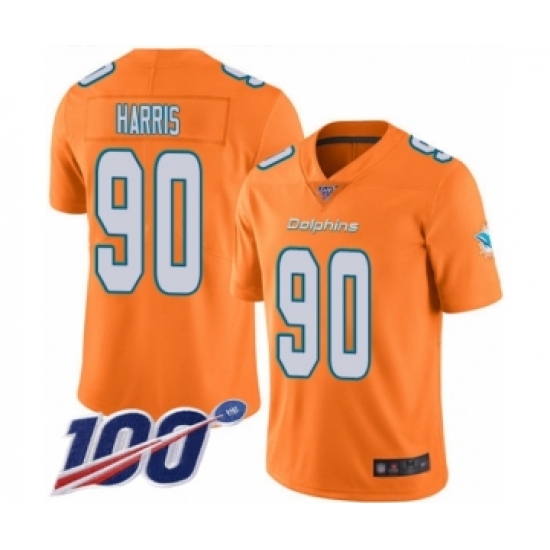 >Men's Miami Dolphins #90 Charles Harris Limited Orange Rush Vapor Untouchable 100th Season Football Jersey