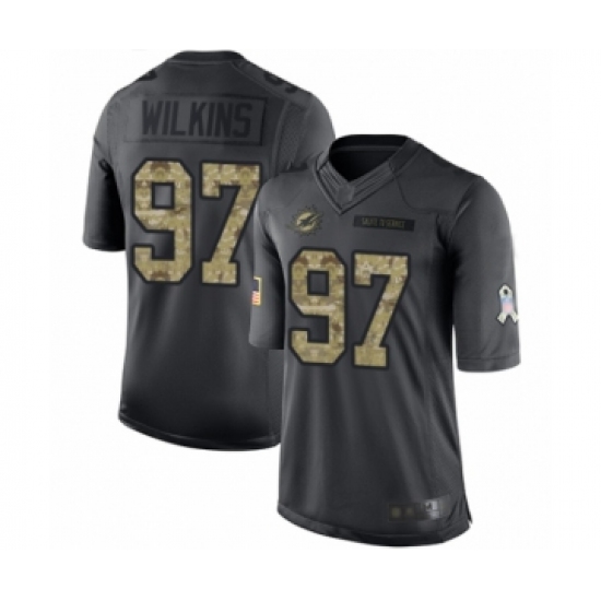 >Men's Miami Dolphins #97 Christian Wilkins Limited Black 2016 Salute to Service Football Jersey