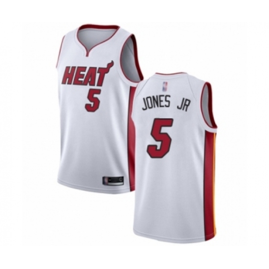 >Men's Miami Heat #5 Derrick Jones Jr Authentic White Basketball Jersey - Association Edition