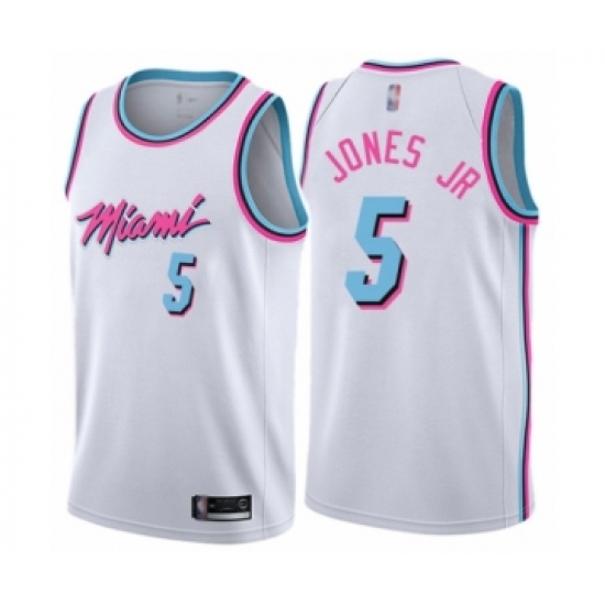 Men's Miami Heat #5 Derrick Jones Jr Authentic White Basketball Jersey - City Edition