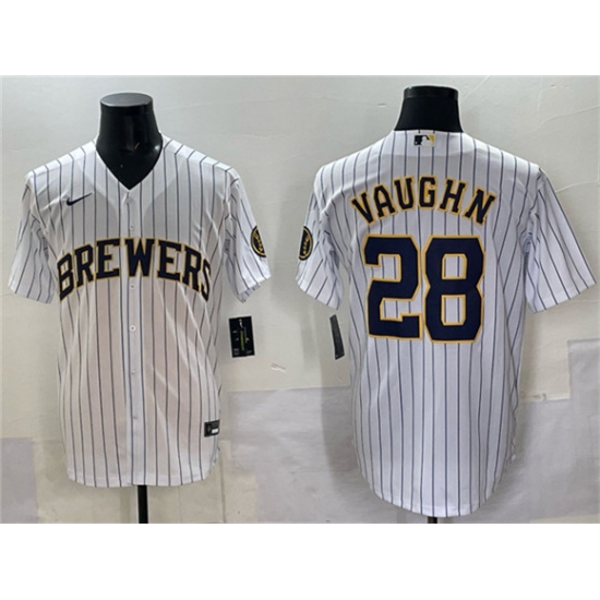 Men's Milwaukee Brewers #28 Andrew Vaughn White Pinstripe 2025 With Stitched Baseball Jersey