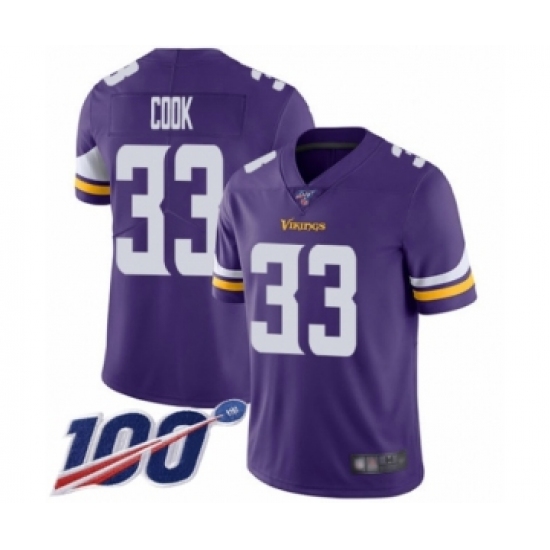 Men's Minnesota Vikings #33 Dalvin Cook Purple Team Color Vapor Untouchable Limited Player 100th Season Football Jersey