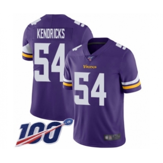 Men's Minnesota Vikings #54 Eric Kendricks Purple Team Color Vapor Untouchable Limited Player 100th Season Football Jersey