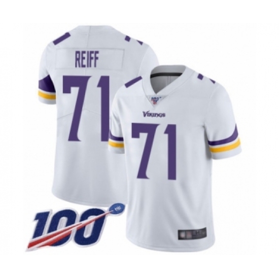 Men's Minnesota Vikings #71 Riley Reiff White Vapor Untouchable Limited Player 100th Season Football Jersey