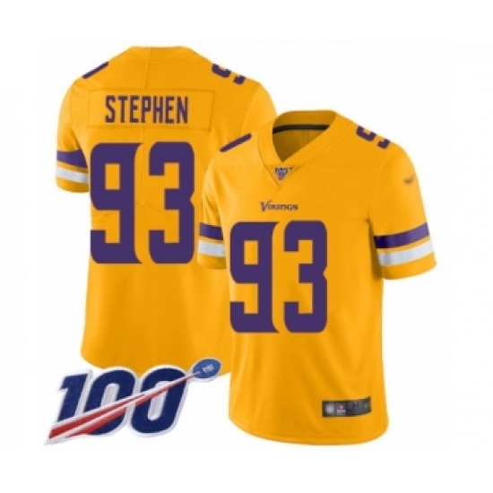 Men's Minnesota Vikings #93 Shamar Stephen Limited Gold Inverted Legend 100th Season Football Jersey