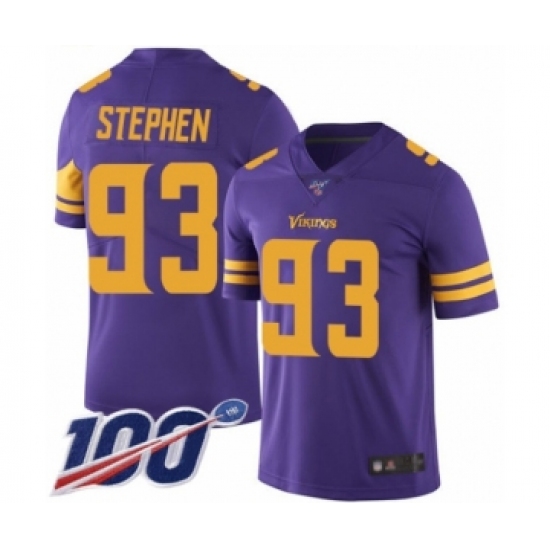 Men's Minnesota Vikings #93 Shamar Stephen Limited Purple Rush Vapor Untouchable 100th Season Football Jersey