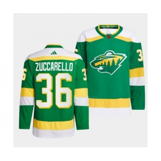 >Men's Minnesota Wild #36 Mats Zuccarello Green 2022-23 Reverse Retro Stitched Jersey