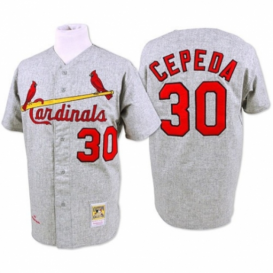>Men's Mitchell and Ness 1967 St. Louis Cardinals #30 Orlando Cepeda Replica Grey Throwback MLB Jersey