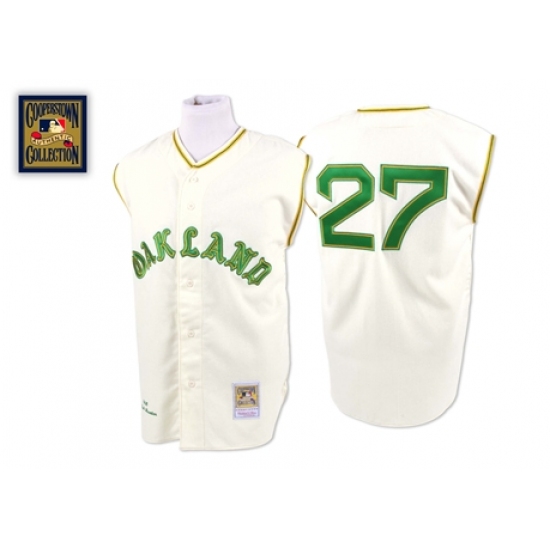 Men's Mitchell and Ness 1968 Oakland Athletics #27 Catfish Hunter Authentic Cream Throwback MLB Jersey