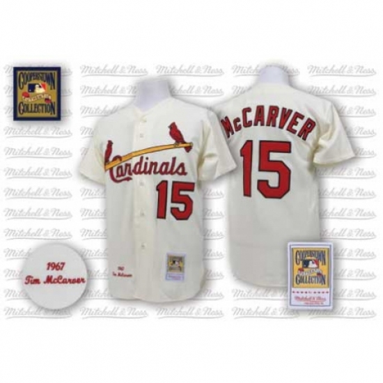 >Men's Mitchell and Ness St. Louis Cardinals #15 Tim McCarver Authentic Cream Throwback MLB Jersey