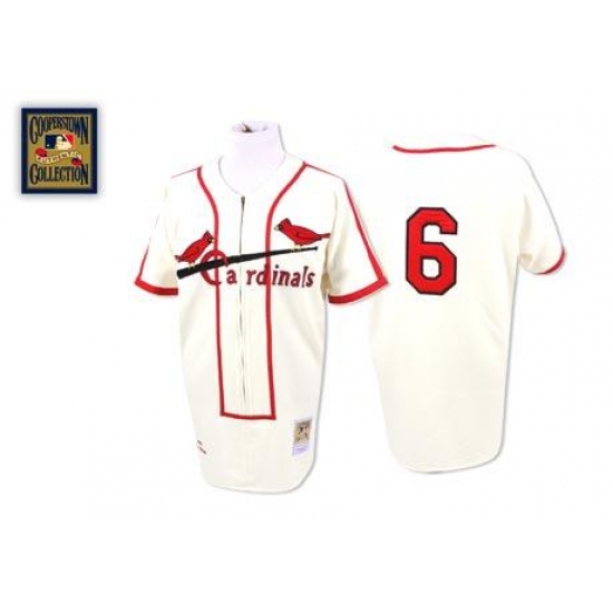 Men's Mitchell and Ness St. Louis Cardinals #6 Stan Musial Authentic Cream Throwback MLB Jersey