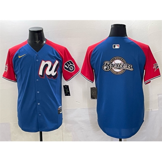 Men's National League Milwaukee Brewers Team Big Logo Blue Red Alternate 2025 All-Star Edition Limited Stitched Baseball Jersey