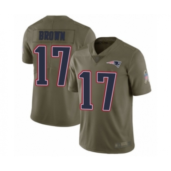>Men's New England Patriots #17 Antonio Brown Limited Olive 2017 Salute to Service Football Jersey