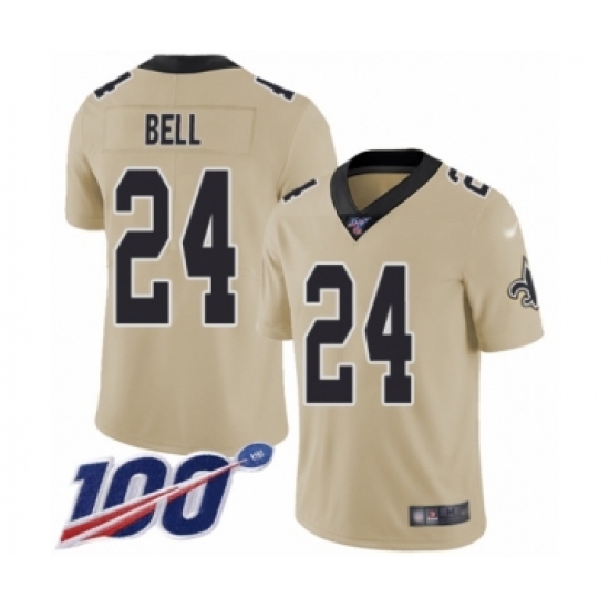>Men's New Orleans Saints #24 Vonn Bell Limited Gold Inverted Legend 100th Season Football Jersey