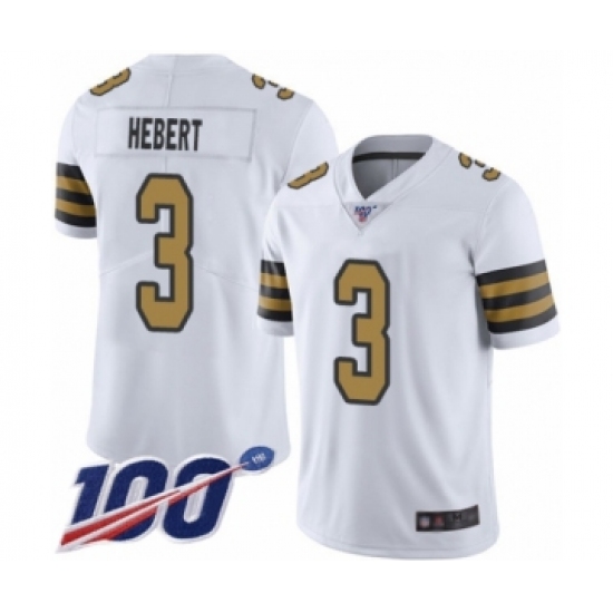 >Men's New Orleans Saints #3 Bobby Hebert Limited White Rush Vapor Untouchable 100th Season Football Jersey