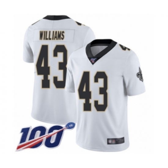 Men's New Orleans Saints #43 Marcus Williams White Vapor Untouchable Limited Player 100th Season Football Jersey